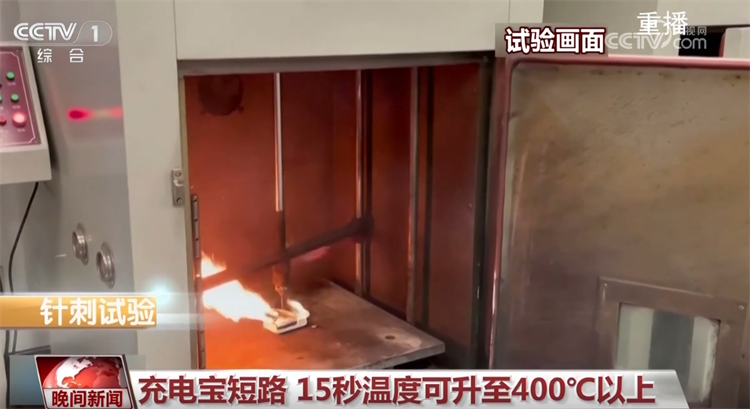 充电宝短路 15秒温度可升至400℃以上